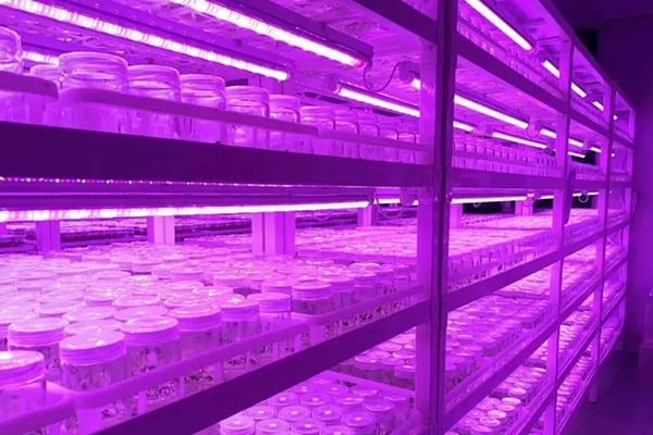 將培養容器的蓋子打開,在自然光下進行開瓶煉苗3-7天,正午強光或南方光照較強的地區應該注意要采取遮陰措施,如用遮陰棚或溫室避免灼傷小苗。如果在培養容器中開蓋培養不夠1周,一般不會引起含蔗糖培養基的汙染問題。開瓶煉菌可以分階段進行,即首先開蓋一兩天,然後部分開蓋一兩天,然後完全揭去蓋。這種方法在相對濕度十分低的屋內特別有好處。培養容器的開口大小也影響開蓋的速度,開口大的瓶蓋應比開口小的瓶蓋除去的速度慢一些。